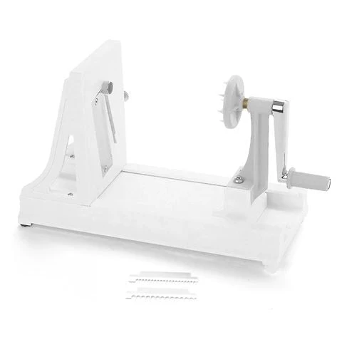 - Turn the crank to create uniform slicers of vegetables and fruit.