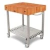 Ideal for providing extra work space, the Cherry Cucina Culinarte Kitchen Cart provides you with both storage space and an exceptional cutting board top. Made from edge grain American cherry wood, the top of this cart is perfect for food preparation, while the stainless-steel shelves underneath let you store ingredients. With wheels for ease of movement and a towel bar, this cart makes a wonderful addition to any kitchen.