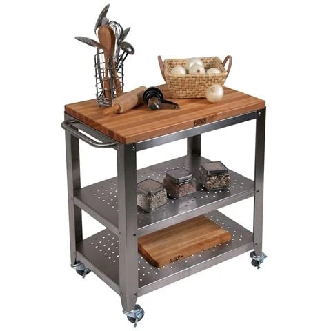 The Cucina Culcinarte Kitchen Cart is a beautiful way to add additional bench space to your kitchen. Featuring a removable four-centimetre thick butcher’s block crafted from hard maple, stainless steel shelves, a stainless steel towel bar and professional grade locking casters, this superior piece can also be used to both serve and store. Made in the USA, this is a reliable kitchen cart that will be a mainstay in your kitchen for years to come.