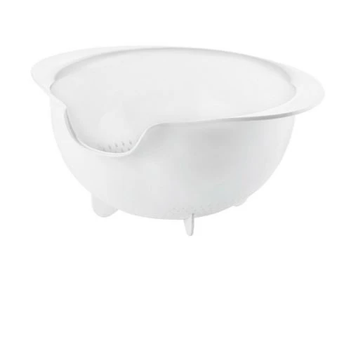 Stabilizing feet, lift the colander from the work surface for cleanliness and hygiene.Â